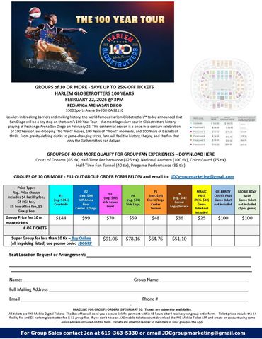 Leaders in breaking barriers and making history, the world-famous Harlem Globetrotters™ today announced that San Diego will be a key stop on the team’s 100 Year Tour—the most legendary tour in Globetrotters history— playing at Pechanga Arena San Diego on February 22. This centennial season is a once-in-a-century celebration of 100 Years of jaw-dropping “No Way!” moves, 100 Years of “Wow!” moments, and 100 Years of basketball thrills. From gravity-defying dunks to game-changing tricks, fans will feel the history, the joy, and the fun that only the Globetrotters can deliver.